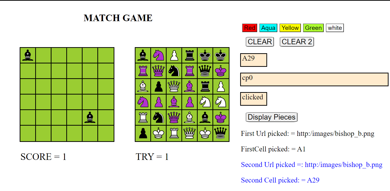 Click on a second square. A picture of another chess piece will